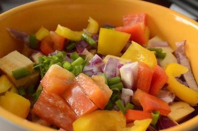 Keywords: salad pepper banana da terra green food vegetables onion yellow red yellow pepper cooking
