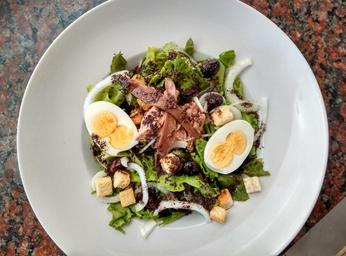 Keywords: salad tuna egg onion food healthy dinner delicious fish plate vegetable lettuce meal fresh eat diet