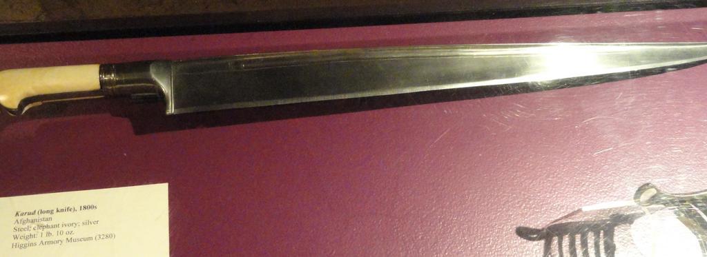 | View Original: | Salawar yataghan (khyber knife), Afghanistan, 1800s - Higgins Armory Museum - DSC05602.jpg (4320x1574) | |||