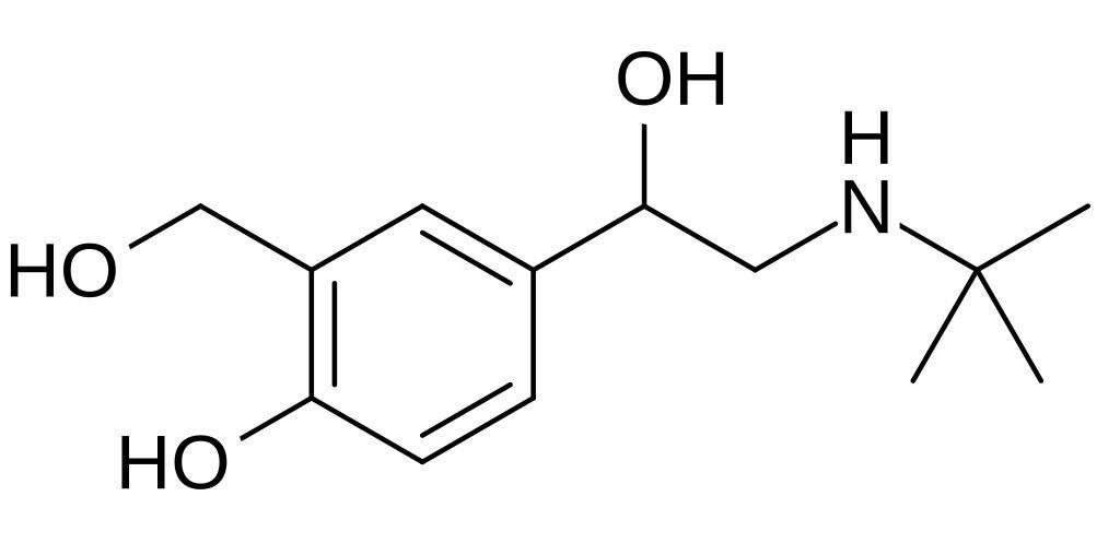 Keywords: Salbutamol structure.svg Chemical structure of salbutamol Own 22 25 16 October 2015 UTC Ed Edgar181 200px Salbutamol