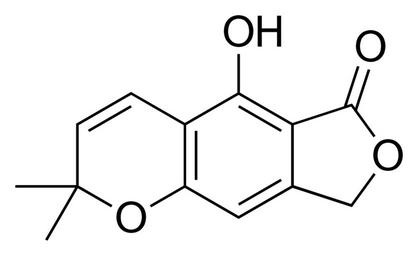 Keywords: Salfredin B11.svg Skeletal formula of salfredin B<sub>11</sub> 5-hydroxy-2 2-dimethyl-2 8-dihydro-6H-furo3 4-gchromen-6-one Created using http //www acdlabs com/download/chemsk html ACD/ChemSketch 10 0 Inkscape and vim Own work after cite journal Mali RS Babu KN 1998 Naturally occurring prenylated phthalides First total synthesis of salfredin B<sub>11</sub> J Chem Research S 6 292 “3 http //www rsc org/delivery/_ArticleLinking/DisplayArticleForFree cfm doi a707767j JournalCode JC 2009-03-18 Fvasconcellos Aldose reductase inhibitors