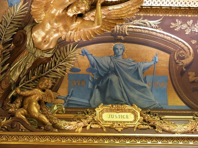 Keywords: Salle d'assemblée générale du Conseil d'État - Justice.jpg en Hall of general assembly of the Conseil d'État in Palais Royal Paris France Medallion ceramics and painting about Justice The inscription Suum civique means Its citizens fr Salle d'assemblée générale du Conseil d'État au Palais Royal Paris Médaillon céramiques et peintures de la Justice L'inscription Suum civique signifie Ses citoyens sf 2014-09-21 Tangopaso Conseil d'État - salle d'assemblée générale Paintings by Jules-Élie Delaunay Allegories of justice Latin inscriptions in Paris Suum cuique |