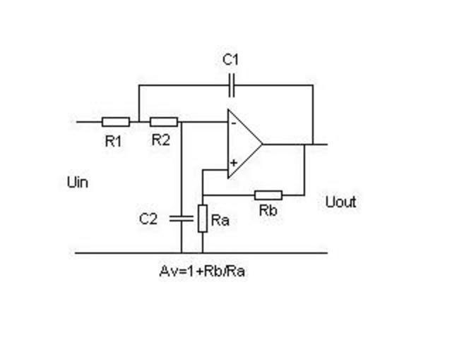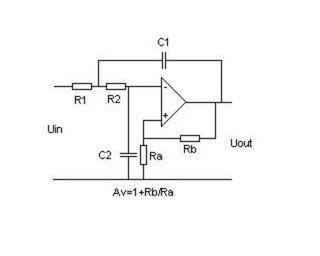 Keywords: Sallenandkey.jpg en second order lowpass filter Own Knoppson 2009-09-20 Lowpass filter circuits