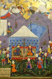 View Original: | Salm and Tur receive the reply of Faridun and Manuchihr, folio from Shahnameh of Shah Tahmasp, attrib. 'Abd al-'Aziz, Iran, Tabriz, c. 1522-1535 AD, view 2 - Aga Khan Museum - Toronto, Canada - DSC06923.jpg (-3648x5472) | |||
