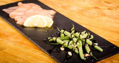 Keywords: salmon beans food vegetable seafood fillet cooked fish cuisine salad