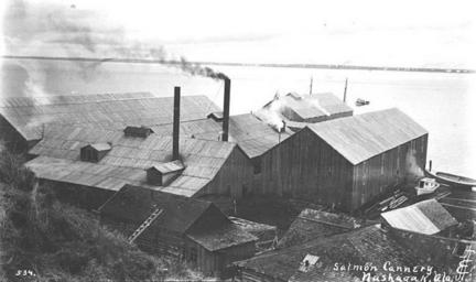 Keywords: Salmon cannery, Nushagak, ca 1912 (THWAITES 80).jpeg check categories 27 October 2016 1 Photograph Creator John E Thwaites Caption on image Salmon cannery Nushagak Ala PH Coll 247 174<br/>Nushagak Bay in northern Bristol Bay at the confluence of the Wood and Nushagak Rivers It lies 327 miles southwest of Anchorage The area was inhabited by both Eskimos and Athabascans and became a trade center when Russians erected the Alexandrovski Redoubt Post in 1818 Local Native groups and Natives from the Kuskokwim Region the Alaska Peninsula and Cook Inlet mixed together as they came to visit or live at the post The community was known as Nushagak by 1837 when a Russian Orthodox mission was established In 1881 the U S Signal Corps established a meteorological station at Nushagak In 1884 the first salmon cannery in the Bristol Bay region was constructed by Arctic Packing Co The city of Dillingham is now located at the extreme northern end of Nushagak Bay Subjects LCTGM Nushagak Bay Alaska ; Nushagak Alaska Subjects LCSH Salmon canneries--Alaska--Nushagak; Salmon canning industry--Alaska--Nushagak depicted place United States--Alaska--Nushagak ca 1912 Institution University of Washington UWASH-THWAITES-source accession number thwaites 80 PD-old-auto-1923 1940 Information field Order Number THW096 Images from the John E Thwaites Photographs of Alaska Collection to check Salmon canneries |