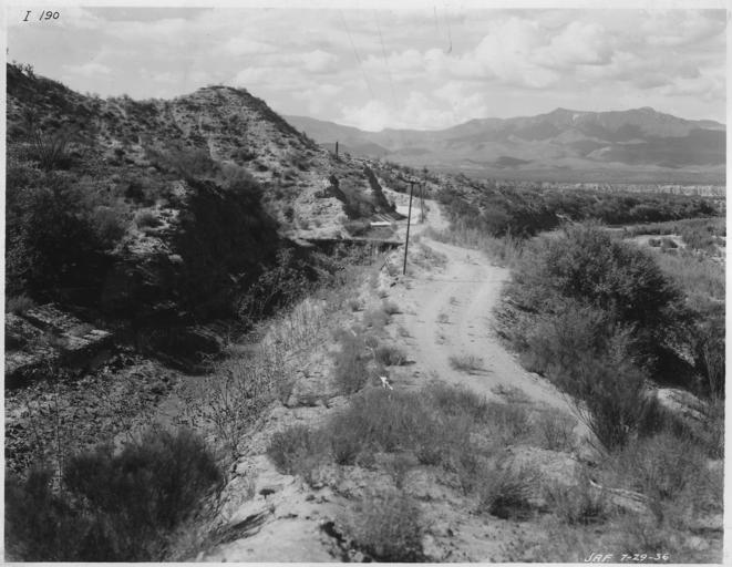 | Keywords: "Salt River - Power Canal - View looking downstream, that shows wood flume located 300' upstream from tunnel 3A. Note... - NARA - 294565.jpg Scope and content Photograph from Volume One of a series of photo albums documenting the construction of Roosevelt Dam Stewart Dam and other related work on the Salt River Project in Arizona General notes 294565 Local identifier Department of the Interior Bureau of Reclamation Engineering and Research Center 05/18/1981 - 03/04/1988 NARA's Rocky Mountain Region Denver NRGA Building 48 Denver Federal Center West 6th Avenue and Kipling Street Denver CO 80225-0307 1936-07-29 Record group Record Group 115 Records of the Bureau of Reclamation 1889 - 2008 Record group ARC 444 Photograph albums compiled 1903 - 1972 Series ARC 293611 File unit File unit ARC Variant control numbers NAIL Control Number NRG-115-CONSTPHO85006-SALTRIVERI190 Other versions <gallery> File Salt_River_-_Power_Canal_-_View_looking_downstream _that_shows_wood_flume_located_300'_upstream_from_tunnel_3A _Note _-_NARA_-_294565 tif tif File Salt_River_-_Power_Canal_-_View_looking_downstream _that_shows_wood_flume_located_300'_upstream_from_tunnel_3A _Note _-_NARA_-_294565 jpg jpg </gallery> NARA-cooperation PD-USGov Construction of the Roosevelt Dam |