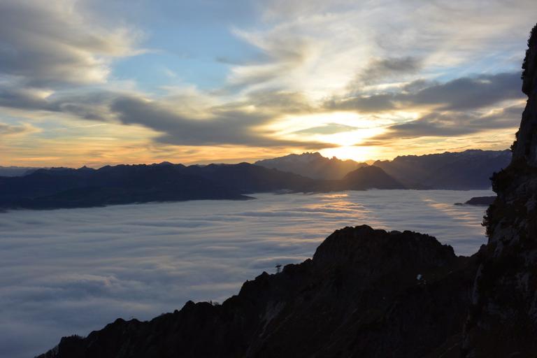 Keywords: salzburg austria unterberg fog clouds alpine sunrise