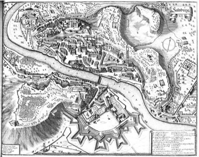 Keywords: Salzburg-neu.jpg de Plan von Salzburg nach Matthaeus Merian 1656 Topographia provinciarum Austriacarum Austriae Styriae Carinthiae Carniolae Tyrolis etc Matthaeus Merian 1656 Historical images of Salzburg 1656 maps Salzach in the Historic centre of the city of Salzburg PD-old-100 |