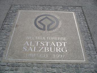 | Keywords: Salzburg UNESCO World Heritage.JPG en The UNESCO World Heritage Logo for the Old Town of Salzburg Austria it Il simbolo Patrimonio mondiale dell'umanità UNESCO per il centro storico di Salisburgo Austria Own Nem80 2005-08-11 Historic centre of the city of Salzburg World Heritage Site signs |