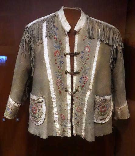 Keywords: Sam Livingston's Embroidered Elk Hide Jacket, c. 1890, view 1 - Glenbow Museum - DSC01117.JPG en Exhibit in the Glenbow Museum 130 9th Ave S E Calgary Alberta Canada This work is old enough so that it is in the public domain Photography was permitted in the museum without restriction 2013-09-21 12 58 03 own Daderot cc-zero Uploaded with UploadWizard Collections of the Glenbow Museum Sam Livingston |