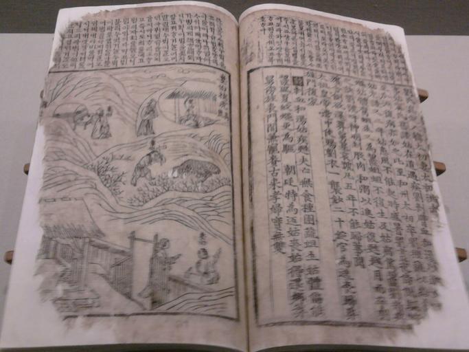 Keywords: Samganghaengsildo in museum.jpg en Samganghaengsildo displayed in Seoul National University Kyujanggak Institute for Koreanology Studies 2013-08-09 11 57 27 own Salamander724 Uploaded with UploadWizard Books from Korea