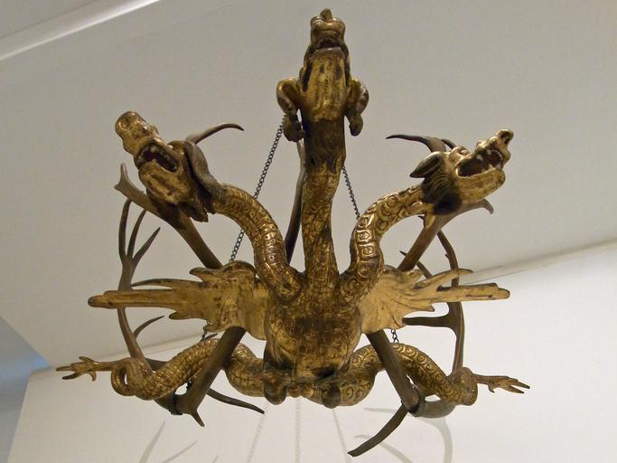 | Keywords: Sammlung Ludwig - Artefakt und Naturwunder-Veit Stoß-Drachenleuchter80342.jpg Artwork creator Veit Stoß after Dreiköpfiger Drache Germany Mittel-Franken Nuremberg <br /> 1522 lime LangSwitch Rentiergeweih Eisen - vergoldet teilweise farbig gefasst gilded partially polycromy reindeer antlers Iron H 48 cm; L 153 cm; B 125 cm Institution Germanisches Nationalmuseum http //objektkatalog gnm de/objekt/HG68 Germanisches Nationalmuseum<br>http //www bildindex de/bilder/MI07841g10a jpg bildindex Object history ehemals Nürnberger Rathaus Johannes Zeltner Nuremberg Exhibition history Artefakt und Naturwunder Das Leuchterweibchen der Sammlung Ludwig 6 Februar - 17 April 2011 Accession number HG68 own Wuselig 2011-02-06 <gallery>Sammlung Ludwig - Artefakt und Naturwunder-Veit Stoß-Drachenleuchter- Entwurf Dürer80327 jpg Entwurf von Albrecht Dürer</gallery> PD-old-100 Drachenleuchter by Veit Stoß after Albrecht Dürer in the GNM k05 |
