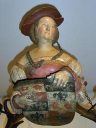 Keywords: Sammlung Ludwig - Artefakt und Naturwunder-Leuchterweibchen Ludwig80218.jpg Leuchterweibchen der Sammlung Ludwig Lindenholz Halbfigur Hirschgeweih Allianzwappen Thüring Göldlin und Margaretha Muntprat Schweiz ca 1540 Suermondt-Ludwig-Museum Aachen Artefakt und Naturwunder Das Leuchterweibchen der Sammlung Ludwig 6 Februar - 17 April 2011 2011-02-06 13 27 18 photograph by Wuselig PD-old Lüsterweibchen Coats of arms of Muntprat family Muntprat Coats of arms of Göldlin family Goldlin Suermondt-Ludwig-Museum |