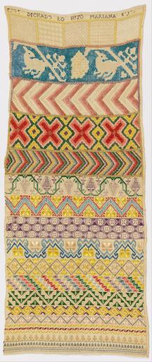 Keywords: Sampler - Google Art Project (6848385).jpg 6938587 Unknown /collection/cooper-hewitt-national-design-museum/artwork/sampler-unknown/6848385/ 176967 author /collection/cooper-hewitt-national-design-museum/ Cooper-Hewitt National Design Museum 3644669 http //www cooperhewitt org/ /collection/cooper-hewitt-national-design-museum/artwork/sampler-unknown/6848385/ 1800 early 19th century Medium silk embroidery on linen foundationTechnique embroidered in satin running eyelet and four-sided stitches with withdrawn element work on plain weave foundation 735 6848385 False 1825 1981-28-360 http //collection cooperhewitt org/view/objects/asitem/id/176967 Bequest of Gertrude M Oppenheimer Sampler 1800 1830 w310 x h735 cm early 19th century False 0 421875 Object sampler-unknown Sampler s 310 H x W 73 x 30 5 cm 28 3/4 x 12 in Dechido lo hizo Mariana beginning and end abraded away Medium silk embroidery on linen foundationTechnique embroidered in satin running eyelet and four-sided stitches with withdrawn element work on plain weave foundation special url_id YAEb1u3xWoEG0A PD-old-100-1923 Google Art Project works by unknown artist Textiles in the Cooper “Hewitt Smithsonian Design Museum 19th-century samplers Google Art Project works in Cooper-Hewitt Smithsonian Design Museum |