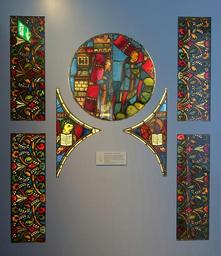 | Keywords: Samson at the Temple of Dagon, from the apse of Alpirsbach Abbey, Kreis Freudenstadt, Strassburg, c. 1170 AD, stained glass - Landesmuseum Württemberg - Stuttgart, Germany - DSC02996.jpg en Exhibit in the Landesmuseum Württemberg - Stuttgart Germany 2015-12-06 07 39 54 own Daderot other versions PD-old-100 cc-zero Medieval art in the Landesmuseum Württemberg Kloster Alpirsbach | ||||