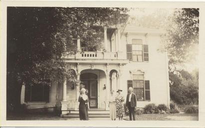 Keywords: Sallie Lee Lightfoot & Lala Long, unidentified woman, and Sam Long in front of Maxey house