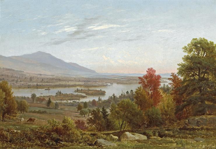 | Keywords: Samuel Lancaster Gerry - Lake Winnipesaukee in October (1858).jpg Artwork creator Samuel Lancaster Gerry 1858 oil canvas in 14 20 accession number object history credit line exhibition history S L Gerry 1858 lower left signature and date http //www bonhams com/auctions/16083/lot/1009/ Bonhams New York 21 May 2008 lot 1009 PD-old-100 DEFAULTSORT Gerry Samuel Lancaster; Lake Winnipesaukee in October; Bonhams 2008 Samuel Lancaster Gerry Lake Winnipesaukee 1850s landscape paintings Landscape paintings of the United States Images from Bonhams |