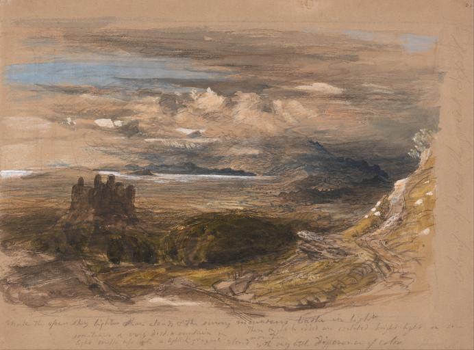 | Keywords: Samuel Palmer - Harlech Castle - Google Art Project.jpg Inscribed in graphite lower center make the open sky lighter than cloud the sunny mountains bathe in light sometimes a very distant mountain in light melts up into a lightest grayish cloud With very little difference of color Harlot ; in graphite lower right There might be added an isolated bright light on the mountain ; in graphite right clump of trees the great depth Inscription _Signed_and_Dated Not signed not dated Not on View Watercolor gouache and varnish over graphite with scraping out on medium slightly textured brown wove paper castle landscape special url_id kwFkV4QJG2K8QA PD-old-100-1923 1881 Watercolor paintings by Samuel Palmer Google Art Project works by Samuel Palmer |