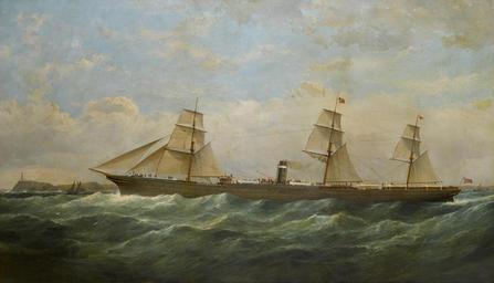 Keywords: Samuel Walters - The S.S. City of Berlin outward bound passing Cape Pine Lighthouse (1876).jpg Artwork Creator Samuel Walters 1876 oil canvas cm 87 6 151 1 object history credit line S Walters/1876 ~ lower left signature and date The S S City of Berlin was a British passenger liner built by Caird Company in Scotland She was the Inman Line's premier vessel for thirteen years and won the Blue Riband for the Inman Line in 1875 as the fastest liner on the Atlantic She was also the largest passenger ship for six years The S S City of Berlin served the Inman Line until 1893 when Inman was merged into the American Line and was operated by her new owners on both the American Line and Red Star Line until 1898 In 1895 she and the City of Chester were replaced in the American Line's weekly mail fleet by the new express liners the St Louis and the St Paul Renamed the S S Berlin she was placed on the Antwerp - New York route for the Red Star Line with occasional sailings for the American Line In 1898 the S S Berlin was sold to the U S Government for the Spanish-American War and was renamed Meade She trooped to the Philippines until she was damaged by a fire in San Francisco on January 31 1906 Repaired she continued service through World War I and was finally scrapped in 1921 <ref>http //www bonhams com/auctions/20970/lot/86/ Bonhams</ref><small> reflist </small> accession number http //www bonhams com/auctions/20970/lot/86/ Bonhams Jun 5 2013 - New York lot 86 PD-old-100 Samuel Walters City of Berlin ship 1874 Images from Bonhams |