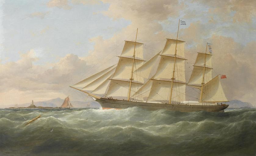 Keywords: Samuel Walters - The ship 'Chevy Chase' inward bound off the Skerries (1864).jpg Artwork Creator Samuel Walters 1864 oil canvas cm 50 8 81 3 object history credit line ~ lower left signature and date 'Chevy Chase ™ was an iron full-rigger built for Blythe Bros of Liverpool in October 1863 Launched from Vernon ™s yard also in Liverpool she was a handsome 3-master registered at 678 tons gross net and measuring 177 feet in length with a 28 foot beam Although she began her career trading to India in 1866 she transferred into the South American trade where she remained until 1872 Sold that year to G H Fletcher Co of Liverpool her new owner ran her out of the Clyde to San Francisco a route she maintained until 1876 when she was cut down to a barque to save on crewing costs She continued trading thereafter until disappearing from record in the mid-1880s accession number http //www bonhams com/auctions/14977/lot/63/ Bonhams London 11 Sep 2007 lot 63 PD-old-100-1923 Samuel Walters Sailing ships in paintings Images from Bonhams |