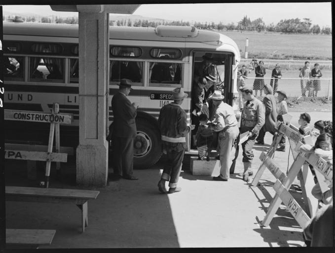 | Keywords: San Bruno, Calfiornia. San Francisco family end first stage of evacuation and are seen leaving the . . . - NARA - 537489.jpg Scope and content The full caption for this photograph reads San Bruno Calfiornia San Francisco family end first stage of evacuation and are seen leaving the bus at the Tanforan Assembly center General notes 537489 Local identifier 210-G-C137 Department of the Interior War Relocation Authority 02/16/1944 - 06/30/1946 NARA-Author Lange Dorothea 1895-1965 Photographer 1372774 <br /> Still Picture Records Section Special Media Archives Services Division NWCS-S National Archives at College Park 8601 Adelphi Road College Park MD 20740-6001 1942-04-29 Record group Record Group 210 Records of the War Relocation Authority 1941 - 1989 Record group ARC 537 Central Photographic File of the War Relocation Authority compiled 1942 - 1945 Series ARC 536000 File unit File unit ARC Variant control numbers NAIL Control Number NWDNS-210-G-C137 Other versions <gallery> File San_Bruno _Calfiornia _San_Francisco_family_end_first_stage_of_evacuation_and_are_seen_leaving_the_ _ _ _-_NARA_-_537489 tif tif File San_Bruno _Calfiornia _San_Francisco_family_end_first_stage_of_evacuation_and_are_seen_leaving_the_ _ _ _-_NARA_-_537489 jpg jpg </gallery> NARA-cooperation PD-USGov Dorothea Lange Tanforan Assembly Center |