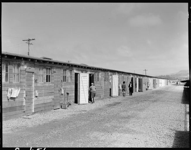 Keywords: San Bruno, California. Shown here is one type of barracks for family use. These were formerly stal . . . - NARA - 537954.jpg Scope and content The full caption for this photograph reads San Bruno California Shown here is one type of barracks for family use These were formerly stalls for race horses Each family is assigned to two small rooms the inner one without outside nor or window The center has been in operation about six weeks General notes 537954 Local identifier 210-G-C656 Department of the Interior War Relocation Authority 02/16/1944 - 06/30/1946 NARA-Author Lange Dorothea 1895-1965 Photographer 1372774 <br /> Still Picture Records Section Special Media Archives Services Division NWCS-S National Archives at College Park 8601 Adelphi Road College Park MD 20740-6001 1942-06-16 Record group Record Group 210 Records of the War Relocation Authority 1941 - 1989 Record group ARC 537 Central Photographic File of the War Relocation Authority compiled 1942 - 1945 Series ARC 536000 File unit File unit ARC Variant control numbers NAIL Control Number NWDNS-210-G-C656 Other versions <gallery> File San_Bruno _California _Shown_here_is_one_type_of_barracks_for_family_use _These_were_formerly_stal_ _ _ _-_NARA_-_537954 tif tif File San_Bruno _California _Shown_here_is_one_type_of_barracks_for_family_use _These_were_formerly_stal_ _ _ _-_NARA_-_537954 jpg jpg </gallery> NARA-cooperation PD-USGov Dorothea Lange Tanforan Assembly Center |