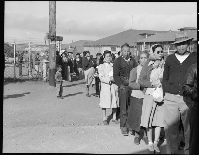 | Keywords: San Bruno, California. Supper time^ Meal times are the big events of the day within an assembly ce . . . - NARA - 537932.jpg Scope and content The full caption for this photograph reads San Bruno California Supper time Meal times are the big events of the day within an assembly center This is a line-up of evacuees waiting for the B shift at 5 45 pm They carry with them their own dishes and cutlery in bags to protect them from the dust They themselves individually wash their own dishes after each meal since dish washing facilities in the mess halls proved inadequate Most of the residents prefer this second shift because they sometimes get second helpings but the groups are rotated each week There are eighteen mess halls in camp which together accomodate 8 000 persons three times a day All food is prepared and served by evacuees General notes 537932 Local identifier 210-G-C632 Department of the Interior War Relocation Authority 02/16/1944 - 06/30/1946 NARA-Author Lange Dorothea 1895-1965 Photographer 1372774 <br /> Still Picture Records Section Special Media Archives Services Division NWCS-S National Archives at College Park 8601 Adelphi Road College Park MD 20740-6001 1942-06-16 Record group Record Group 210 Records of the War Relocation Authority 1941 - 1989 Record group ARC 537 Central Photographic File of the War Relocation Authority compiled 1942 - 1945 Series ARC 536000 File unit File unit ARC Variant control numbers NAIL Control Number NWDNS-210-G-C632 Other versions <gallery> File San_Bruno _California _Supper_time _Meal_times_are_the_big_events_of_the_day_within_an_assembly_ce_ _ _ _-_NARA_-_537932 tif tif File San_Bruno _California _Supper_time _Meal_times_are_the_big_events_of_the_day_within_an_assembly_ce_ _ _ _-_NARA_-_537932 jpg jpg </gallery> NARA-cooperation PD-USGov Dorothea Lange Tanforan Assembly Center |