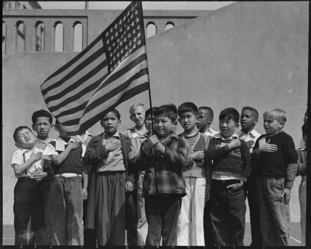 Keywords: San Francisco, California. Flag of allegiance pledge at Raphael Weill Public School, Geary and Buch . . . - NARA - 536053.jpg Scope and content The full caption for this photograph reads San Francisco California Flag of allegiance pledge at Raphael Weill Public School Geary and Buchanan Streets Children in families of Japanese ancestry were evacuated with their parents and will be housed for the duration in War Relocation Authority centers where facilities will be provided for them to continue their education General notes 536053 Local identifier 210-G-A78 Department of the Interior War Relocation Authority 02/16/1944 - 06/30/1946 NARA-Author Lange Dorothea 1895-1965 Photographer 1372774 <br /> Still Picture Records Section Special Media Archives Services Division NWCS-S National Archives at College Park 8601 Adelphi Road College Park MD 20740-6001 1942-04-20 Record group Record Group 210 Records of the War Relocation Authority 1941 - 1989 Record group ARC 537 Central Photographic File of the War Relocation Authority compiled 1942 - 1945 Series ARC 536000 File unit File unit ARC Variant control numbers NAIL Control Number NWDNS-210-G-A78 Other versions <gallery> File San_Francisco _California _Flag_of_allegiance_pledge_at_Raphael_Weill_Public_School _Geary_and_Buch_ _ _ _-_NARA_-_536053 tif tif File San_Francisco _California _Flag_of_allegiance_pledge_at_Raphael_Weill_Public_School _Geary_and_Buch_ _ _ _-_NARA_-_536053 jpg jpg </gallery> NARA-cooperation PD-USGov Dorothea Lange Japantown San Francisco in 1942 Black and white photographs of flags of the United States |