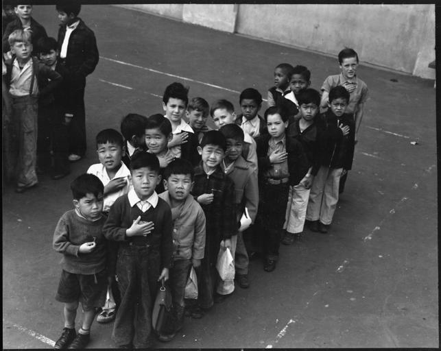 Keywords: San Francisco, California. Flag of allegiance pledge at Raphael Weill Public School, Geary and Buch . . . - NARA - 537478.jpg Scope and content The full caption for this photograph reads San Francisco California Flag of allegiance pledge at Raphael Weill Public School Geary and Buchanan Streets Children in families of Japanese ancestry were evacuated with their parents and will be housed for the duration in War Relocation Authority centers where facilities will be provided for them to continue their education General notes 537478 Local identifier 210-G-C125 Department of the Interior War Relocation Authority 02/16/1944 - 06/30/1946 NARA-Author Lange Dorothea 1895-1965 Photographer 1372774 <br /> Still Picture Records Section Special Media Archives Services Division NWCS-S National Archives at College Park 8601 Adelphi Road College Park MD 20740-6001 1942-04-20 Record group Record Group 210 Records of the War Relocation Authority 1941 - 1989 Record group ARC 537 Central Photographic File of the War Relocation Authority compiled 1942 - 1945 Series ARC 536000 File unit File unit ARC Variant control numbers NAIL Control Number NWDNS-210-G-C125 Other versions <gallery> File San_Francisco _California _Flag_of_allegiance_pledge_at_Raphael_Weill_Public_School _Geary_and_Buch_ _ _ _-_NARA_-_537478 tif tif File San_Francisco _California _Flag_of_allegiance_pledge_at_Raphael_Weill_Public_School _Geary_and_Buch_ _ _ _-_NARA_-_537478 jpg jpg </gallery> NARA-cooperation PD-USGov Dorothea Lange Japanese American internment processing in San Francisco