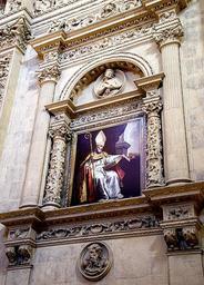 Keywords: San Isidoro de Sevilla, de Murillo (SacristÃa mayor de la catedral de Sevilla).jpg Artwork Creator Bartolomé Esteban Perez Murillo San Isidoro c 556-636 que fue el vigésimo cuarto arzobispo de Sevilla entre los años 600 y 636 aparece con mitra y báculo Y la tradición señala que el rostro del santo que destaca por estar profundamente concentrado en la lectura corresponde al del licenciado Juan López de Tabalán 4 avril 2008 Il y a 1372 ans mourait Isidore de Séville saint patron des informaticiens et encyclopédistes 23 mars 2011 Isidore de Séville « Ces Wikipédiens sont vraiment les meilleurs » 1655 oil canvas Size cm 193 165 Catedral de Santa MarÃa de la Sede de Sevilla Sacristia mayor de la catedral de Sevilla object history exhibition history credit line accession number http //leyendasdesevilla blogspot com es/2015/02/visitando-la-catedral-xxi-la-sacristia html PD-old-100 Paintings in the SacristÃa mayor of Seville Cathedral Paintings by Bartolomé Esteban Murillo in the Cathedral of Seville Saints by Bartolomé Esteban Murillo Isidor of Sevilla Isidore of Seville 1620s oil on canvas paintings in Spain 1620s paintings from Spain 17th-century oil paintings of sitting men at full length 17th-century paintings of Christian saints Baroque paintings of men Paintings of Christian saints holding books Paintings of men holding open books Paintings of reading men |