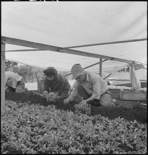 Keywords: San Leandro, California. Bunching young tomato plants on an Alameda County farm for one of the last . . . - NARA - 536435.jpg Scope and content The full caption for this photograph reads San Leandro California Bunching young tomato plants on an Alameda County farm for one of the last shipments prior to evacuation Evacuees of Japanese ancestry will be housed in War Relocation Authority centers for the duration General notes 536435 Local identifier 210-G-A544 Department of the Interior War Relocation Authority 02/16/1944 - 06/30/1946 NARA-Author Lange Dorothea 1895-1965 Photographer 1372774 <br /> Still Picture Records Section Special Media Archives Services Division NWCS-S National Archives at College Park 8601 Adelphi Road College Park MD 20740-6001 1942-04-26 Record group Record Group 210 Records of the War Relocation Authority 1941 - 1989 Record group ARC 537 Central Photographic File of the War Relocation Authority compiled 1942 - 1945 Series ARC 536000 File unit File unit ARC Variant control numbers NAIL Control Number NWDNS-210-G-A544 Other versions <gallery> File San_Leandro _California _Bunching_young_tomato_plants_on_an_Alameda_County_farm_for_one_of_the_last_ _ _ _-_NARA_-_536435 tif tif File San_Leandro _California _Bunching_young_tomato_plants_on_an_Alameda_County_farm_for_one_of_the_last_ _ _ _-_NARA_-_536435 jpg jpg </gallery> NARA-cooperation PD-USGov Agriculture in California Women at work in California Men at work in California Japanese American internment processing in San Leandro California Dorothea Lange |