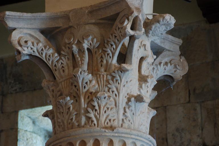 Keywords: San Pietro (Alba Fucens) interior, capitel de columna.JPG es Capitel de una columna interna de la iglesia románica de San Pietro en Alba Fucens Own RoyFocker 2008-06-10 Church of San Pietro Alba Fucens Ancient Roman Corinthian capitals in Italy Alba Fucens |