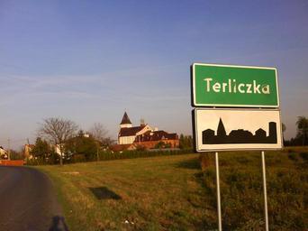 Keywords: Sanctuary of Terliczka.jpg en Sanctuary of Terliczka pl Sanktuarium w Terliczce own Muuczka 2008-11-07 Terliczka City limit signs in Poland Terliczka