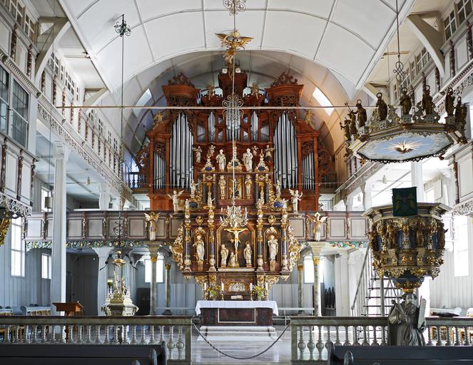| Keywords: sanctuary wooden church market church clausthal-zellerfeld resin oberharz timber construction pine wood carved altar figures pulpit baptismal font tourist attraction building architecture church wood ornately lower saxony organ instrument christianity evangelical lutheran religion |
