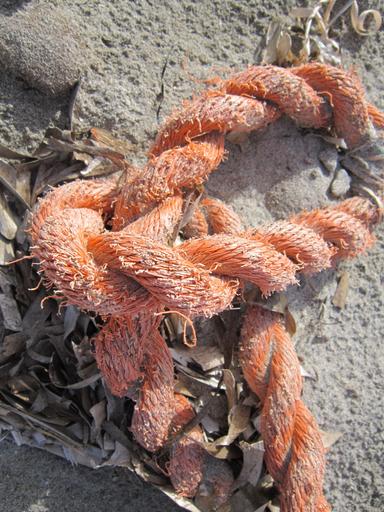 Keywords: sand beach fishing knots rope close flotsam weathered washed ashore