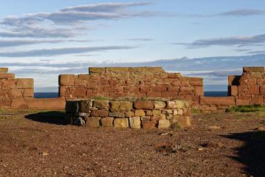 Keywords: sandstone wall battlement stone pattern architecture old brick clouds sky wall background texture weathered