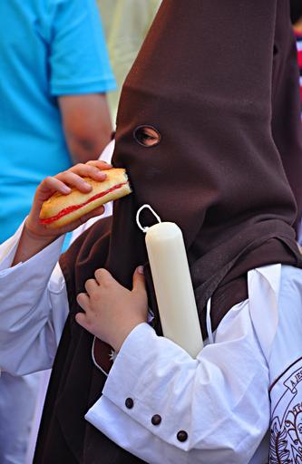 Keywords: sandwich eat food bread snack power feed nutrition seville nazarene brother brotherhood easter celebration procession processions person candle sailing