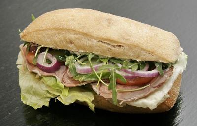 Keywords: sandwich lamb leg of lamb sliced onion red onion food lunch taste dining rocket salad tastes