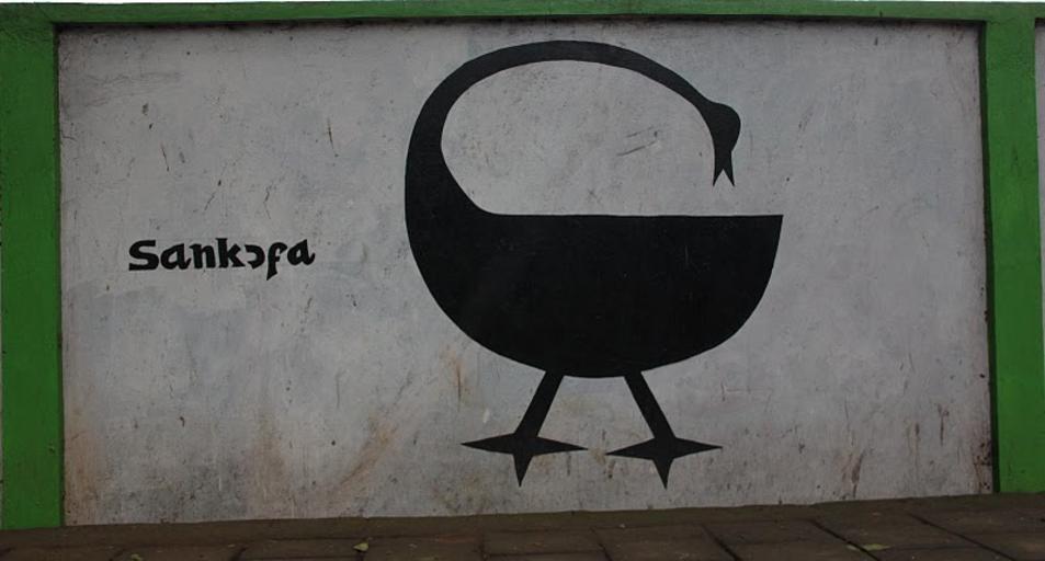 Keywords: Sankofa bird.jpg en Sankofa Bird street painting in Kumasi Ghana ru Изоб ажение Санкофа на улице в Кумаси Гана own Gorodilova 2010-11-01 2010 in Ghana Adinkra