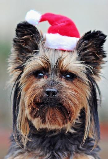Keywords: santa claus dog woman portrait yorkshire terrier christmas