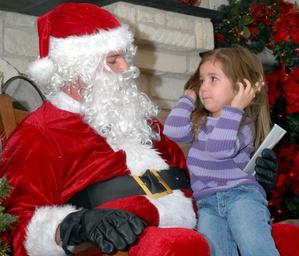 Keywords: Santa Claus visits 15th Sustainment Brigade DVIDS134468.jpg en Lea Heald 3 asks Pfc Rob Floyd Santa Claus and signal support systems specialist A Company 15th Special Troops Battalion 15th Sustainment Brigade for a video game for Christmas at a 15th STB Family Readiness Group Christmas open house event at BLORA Dec 4 2008-12-04 Staff Sgt Matthew Cooley https //www dvidshub net/image/134468 134468 2008-12-08 13 32 FORT HOOD TX US PD-USGov Fort Hood Texas Images from DoD uploaded by Fæ