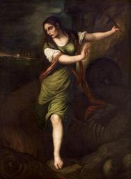 Keywords: Santa Margarita, de Salvador Gutiérrez de la Vega (Ayuntamiento de Sevilla).jpg La obra representa a la virgen y mártir Santa Margarita de Antioquía que murió por profesar el cristianismo Y esta obra es una copia ejecutada hacia 1860 del cuadro de Tiziano que representa a la misma santa y que se conserva en el madrieño Museo del Prado ~ 1860 oil on canvas Size cm 138 184 Institution Ayuntamiento de Sevilla Corredor de la prensa de la Institution Casa consistorial de Sevilla http //patrimoniumhispalense com/es/espacio/casa-consistorial/santa-margarita accession number http //patrimoniumhispalense com/es/espacio/casa-consistorial/santa-margarita PD-old-100 Paintings of Saint Margaret of Antioch Salvador Gutiérrez de la Vega Paintings after Titian Religious paintings in the Ayuntamiento de Sevilla 1860s paintings in Spain |