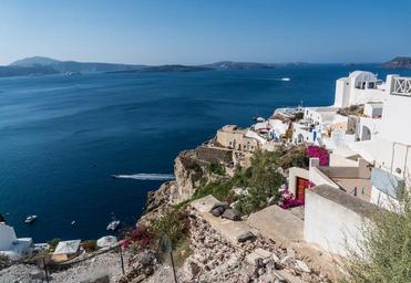 Keywords: santorini oia greece water mountains travel summer island tourism europe vacation mediterranean village white landscape architecture building blue famous destination landmark
