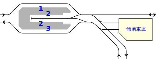 Keywords: Sanyo Shikama station track map.svg en Track map of Sanyo Electric Railway Shikama station in Himeji Hyogo Japan ja 山陽電鉄飾磨駅配線略図 黒田康夫 永山敏行 山陽特集 近年における輸 と運転の動向 鉄道ピクトリアル 2001年12 増刊 電気車研究会 20頁に基づく Own Matsukaze Rail track diagrams of train stations in Japan Shikama Station |