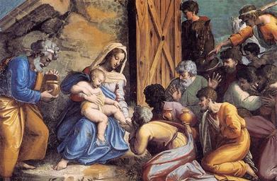 Keywords: Sanzio, Raffaello - Adorazione dei Magi - 1517-1519.jpg Artwork Creator Raffaello Sanzio The Adoration of the Magi 1517-1519 fresco Musei Vaticani-Città del Vaticano Loggia di Raffaello III Loggia Palazzo Apostolico Città del Vaticano http //www ocist org/_borders/raffaello 20loggia 20vaticano 20 jpg www ocist org Other versions PD-old-100 See also <gallery> File DPAG 2008 Raffaello Anbetung der Könige jpg 2008 Stamp of Germany </gallery> The motif is also shown on a 2008 stamp of the Vatican http //www collezioni-f it/nat08-002 jpg image http //www collezioni-f it/nat08 html text ” common issue for Christmas Renaissance paintings of the Adoration of the Magi Loggia di Raffaello Vatican City Adorazione dei Magi Uploads by Mattes from external sources Pointing in art 1510s paintings from Italy 1510s paintings in Italy 16th-century paintings of the Adoration of the Magi Details of frescos |