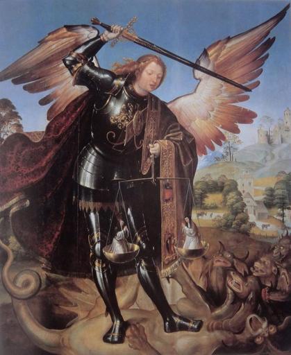 Keywords: São Miguel Arcanjo, oficina de Garcia Fernandes (atr.).jpg 1520 Oil on panel cm 205 175 Coleção da Casa Palmela Portugal object history exhibition history credit line Fotografia de José Pessoa Pub in Cristo Fonte de Esperança catálogo de exposição do Grande Jubileu do Ano 2000 da iniciativa da Conferência Episcopal Portuguesa e organizada pela Diocese do Porto com introdução de D José da Cruz Policarpo coordenação científica de Carlos A Moreira Azevedo João Soalheiro e outros ed Diocese do Porto 2000 Portugal n º 391 p 536 accession number 49107 PD-old-100-1923 1520 Garcia Fernandes Saint Michael and the dragon 1520s paintings from Portugal 16th-century paintings of devils 16th-century paintings of Saint Michael 16th-century paintings of Satan 16th-century paintings in Portugal Angels with swords Files of Portugal uploaded by Darwinius Paintings of Christian saints in Portugal Renaissance paintings of Saint Michael 1520s religious paintings |