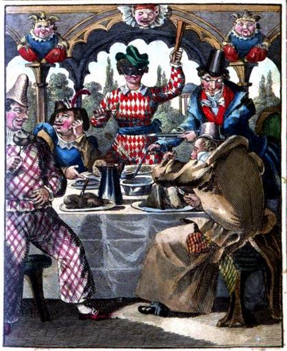 | Keywords: Saphir Carneval- und Masken-Almanach 1834 img02.jpg Abbildung aus Moritz Gottlieb Saphir Carneval- und Masken-Almanach oder Winter-Etui Jaquet München 1834 http //www mdz-nbn-resolving de/urn/resolver pl urn urn nbn de bvb 12-bsb10106658-4 1834 author PD-old-100 Carnivals in art History of Carnival 1834 engravings Meals in art |