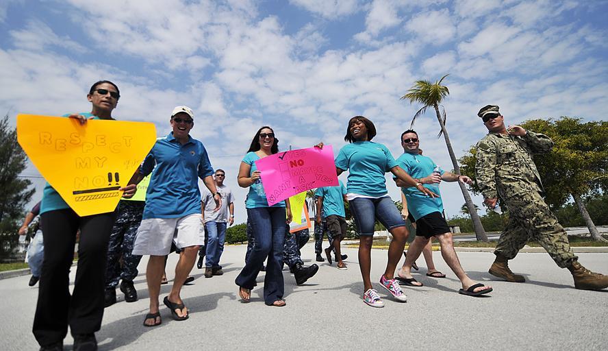 Keywords: SAPR march 140424-N-YB753-069.jpg en Naval Air Station Key West Command Master Chief Lisa Terrell left and Commanding Officer Capt Steve McAlearney join Sailors and civilians participating in a Sexual Assault Prevention and Response march around Boca Chica Field NAS Key West is a state-of-the-art facility for air-to-air combat fighter aircraft of all military services and provides world-class pierside support to U S and foreign naval vessels U S Navy photo by Mass Communication Specialist 2nd Class Brian Morales/ Released 2014-04-24 Petty Officer 2nd Class Brian Morales https //www dvidshub net/image/1280689 140424-N-YB753-069 2014-04-28 09 04 KEY WEST FL US PD-USGov-Military-Navy Naval Air Station Key West Images from DoD uploaded by Fæ |