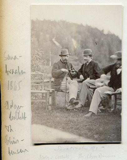 Keywords: holger collett holgercollett th. christensen thchristensen thomas j. heftye thomasjheftye thomas heftye thomasheftye heftye thorvald christensen thorvaldchristensen Holger (Gustav) Collett (1807-1870, dikter) (til venstre), Thorvald Christensen, 1833 - 1913, byråsjef i finansdep (til høyre). Venn av Heftyefamilien og hyppig gjest på Sarabråten. Dyktig amatørtegner som lagde flere tegninger i Sarabråtens gjestebok: www.flickr.com/photos/133429043@N02/17911201631/in/album-... og www.flickr.com/photos/133429043@N02/17884409196/in/album-... Om politikeren og kunstneren Christensen her: nbl.snl.no/Thorvald_Christensen data.eidsvollsmenn.no/tng/getperson.php?personID=I16974&a... Sannsynlig fra besøk sammen med "guttegjeng" 16. 09.1865. Album_3_009_1865 Holger (Gustav) Collett (1807-1870, dikter) (til venstre), Thorvald Christensen, 1833 - 1913, byråsjef i finansdep (til høyre). Venn av Heftyefamilien og hyppig gjest på Sarabråten. Dyktig amatørtegner som lagde flere tegninger i Sarabråtens gjestebok: www.flickr.com/photos/133429043@N02/17911201631/in/album-... og www.flickr.com/photos/133429043@N02/17884409196/in/album-... Om politikeren og kunstneren Christensen her: nbl.snl.no/Thorvald_Christensen data.eidsvollsmenn.no/tng/getperson.php?personID=I16974&a... Sannsynlig fra besøk sammen med "guttegjeng" 16. 09.1865. Album_3_009_1865 |